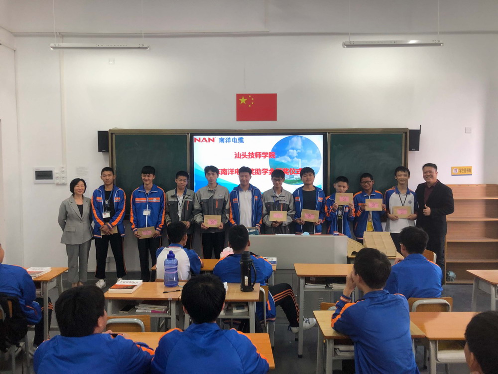 2021年11月09日下午,在汕頭技師學院教學實訓大樓5樓509教室舉行南洋電纜冠名班2020-2021學年第二學期企業獎學金頒獎儀式。汕頭技師學院機電工程系的黃主任,廣東南洋電纜股份有限公司代表羅旭琴、章浩榮、洪澤輝、胡南標等人出席頒獎儀式。